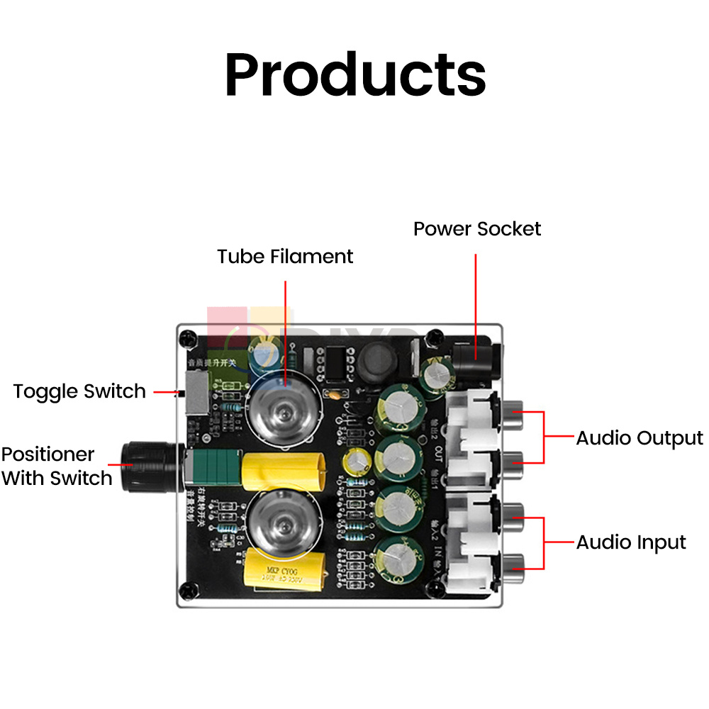 6K4 Audiophile Tube Preamp Board Amplifier Preamp Hi-Fi 3-band Adjustable 12-16V