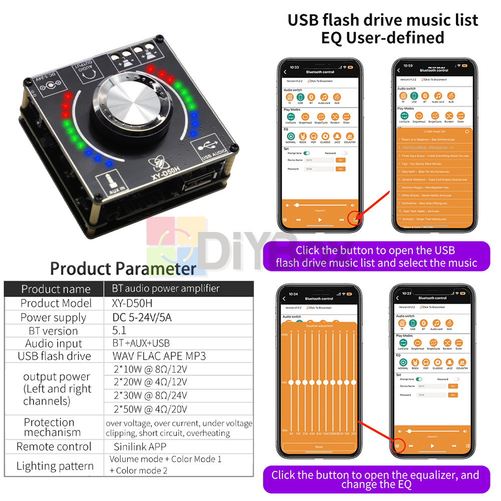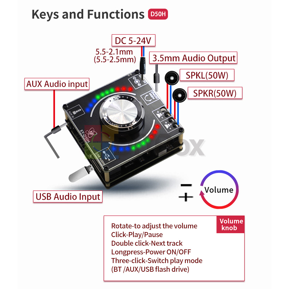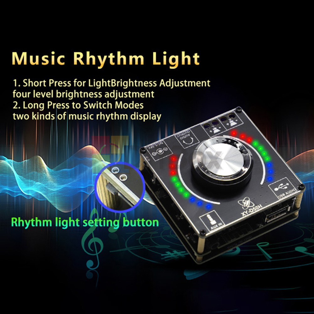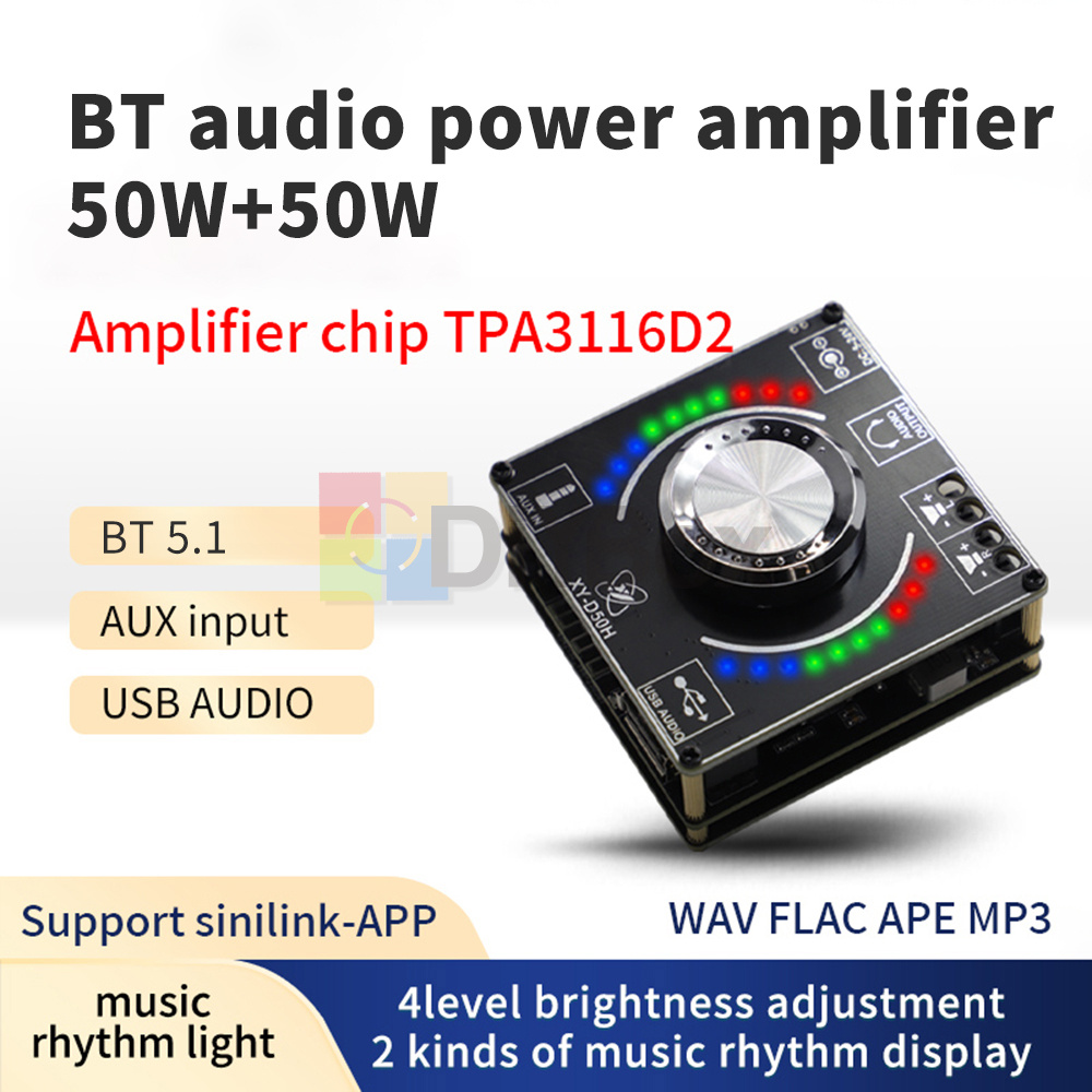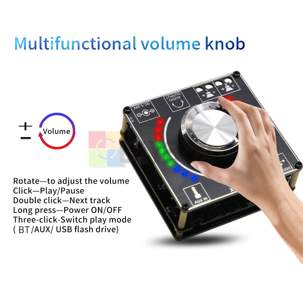 DC5-24V/5A HIFI Stereo Bluetooth Amplifier Board Volume Spectrum TPA3116 50W*2