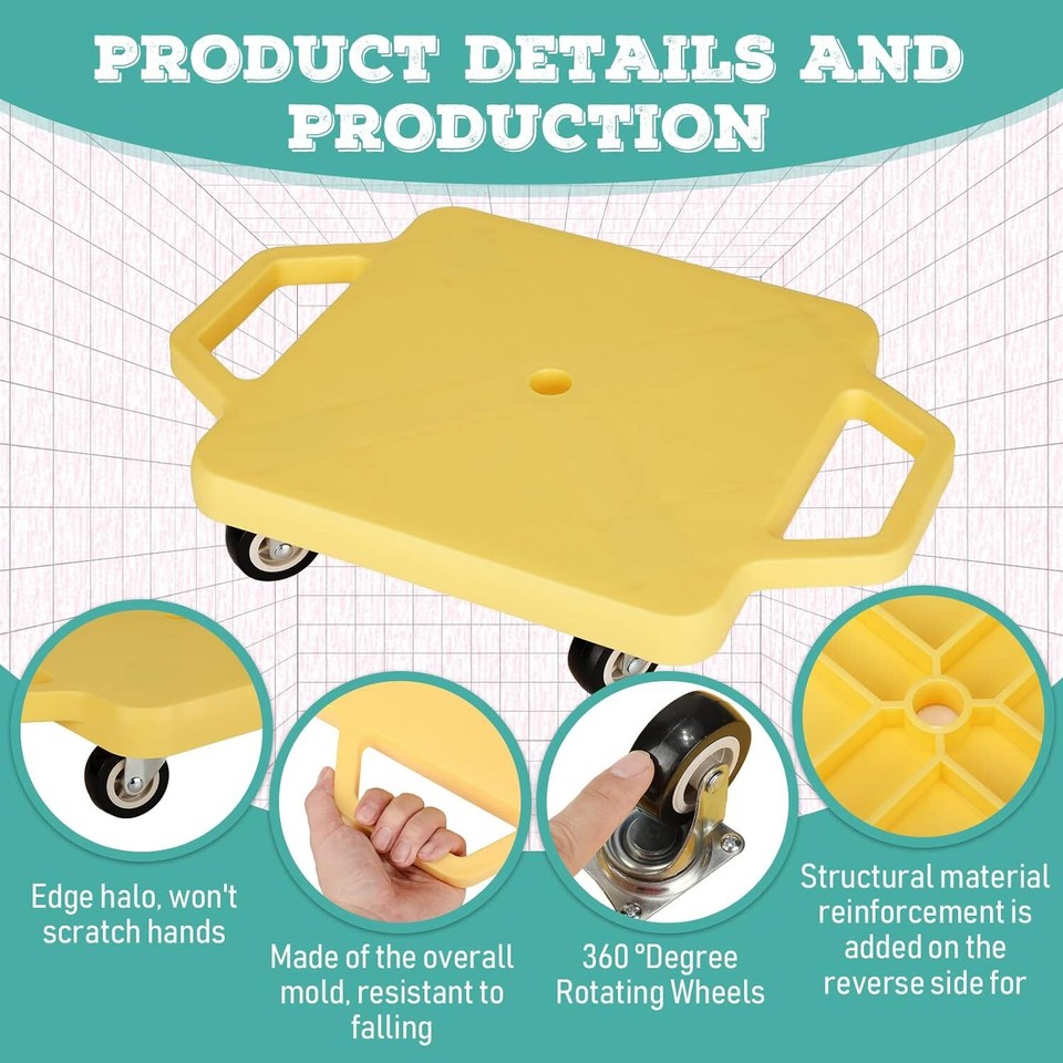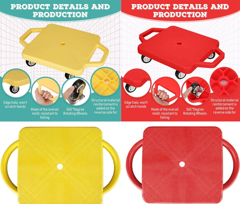 360 Degree Rotating Wheels: our floor scooter board has non marring swivel casters to protect indoor floors; 360 swivel casters with double bearing for rolling, plastic wheels won't scratch floors