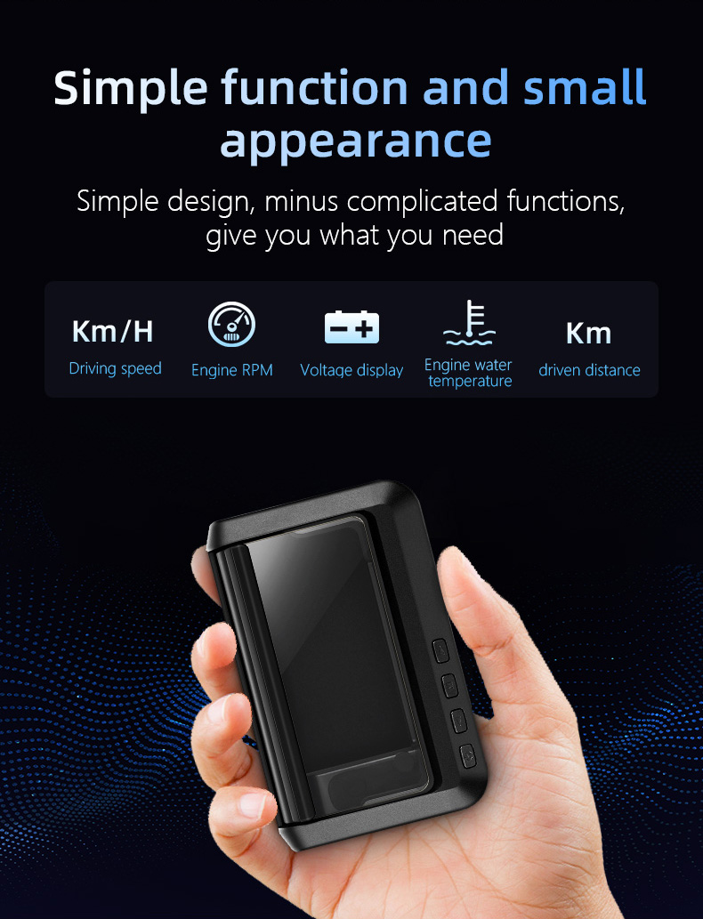 9. Display information: Speed, engine RPM,water temperature, driving distance,battery voltage....