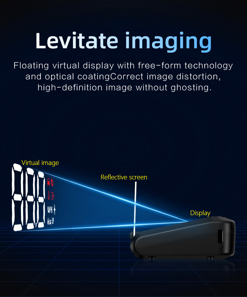 3. Easy to Install, Only need connect the HUD with Car OBD port by OBD cable, HUD will display when car engine on / off