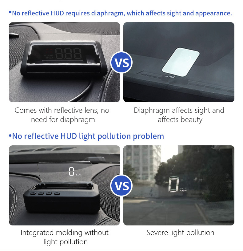 - Oil-electric hybrid and some diesel vehicles cannot use OBD2 HUD, GPS HUD are recommended.