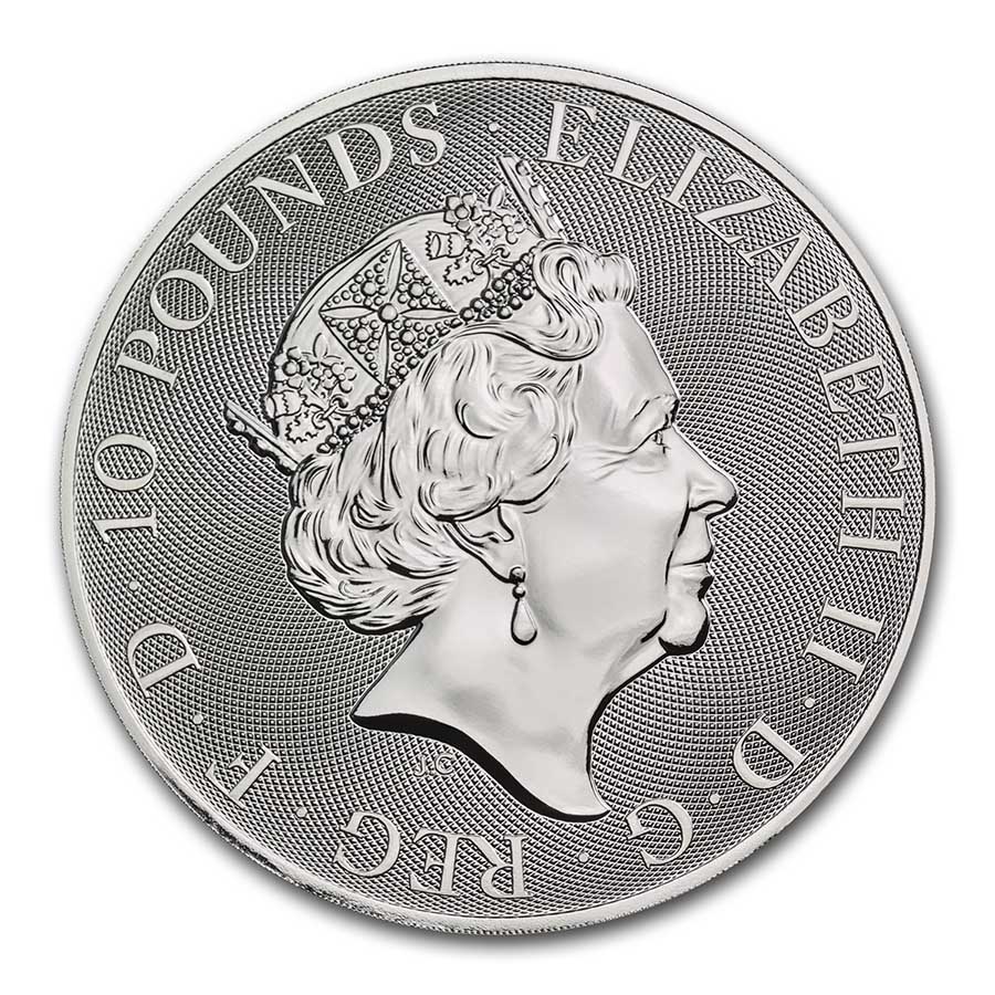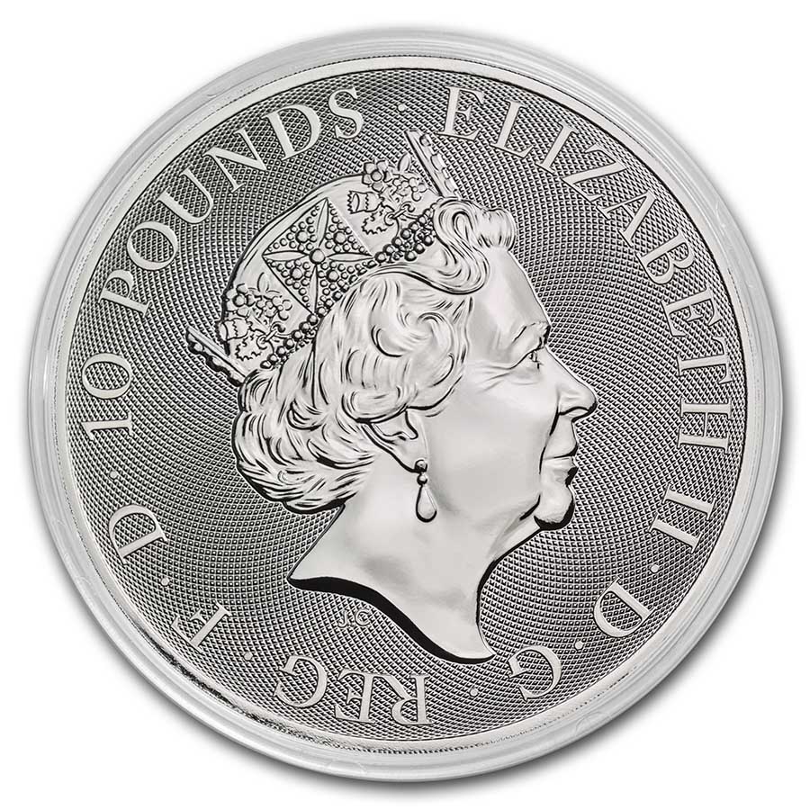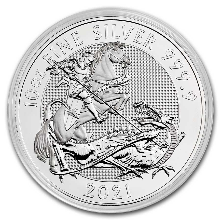 This coin celebrates a legend representing honor, courage and victory, with its impressive design of St. George and the dragon. Add this stunning .9999 fine 10 oz Silver Valiant coin from the Royal Mint to your cart today!