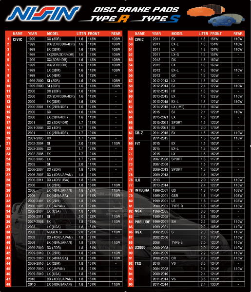 | Front | Civic Si | 2012 to 2014 |