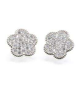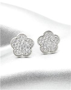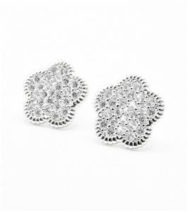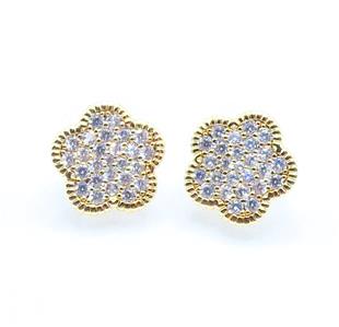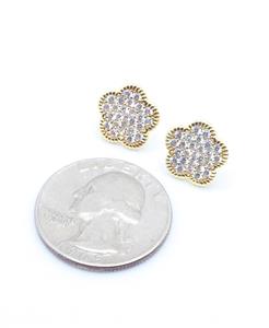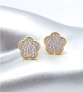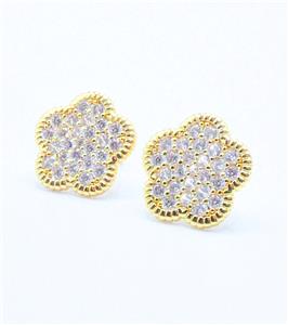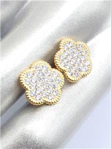LUXURIOUS 18kt Gold Plated Crystals Encrusted 5 Petal Clover Flower Stud Post Earrings