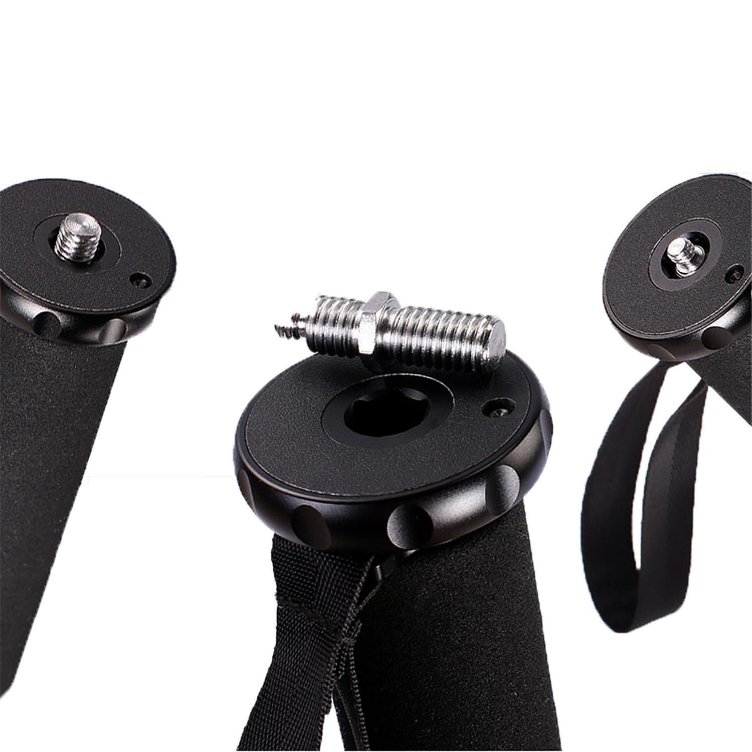 • umkehrbare 1/4" und 3/8" Schraube an der Montageplatte ermöglicht die Befestigung von praktisch jeder Kamera, Objektiv, Camcorder oder Kopf
