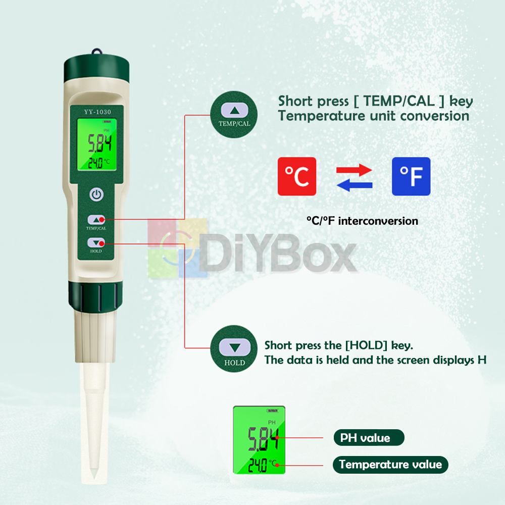 YY-1030 Food PH Meter Thermometer Electrode Soil PH Test Pen Acidity Tester Set