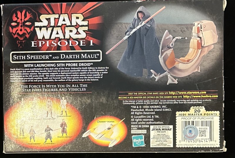 Ray Park Signed STAR WARS EP I Sith Speeder & Darth Maul w/Probe Droid BECKETT