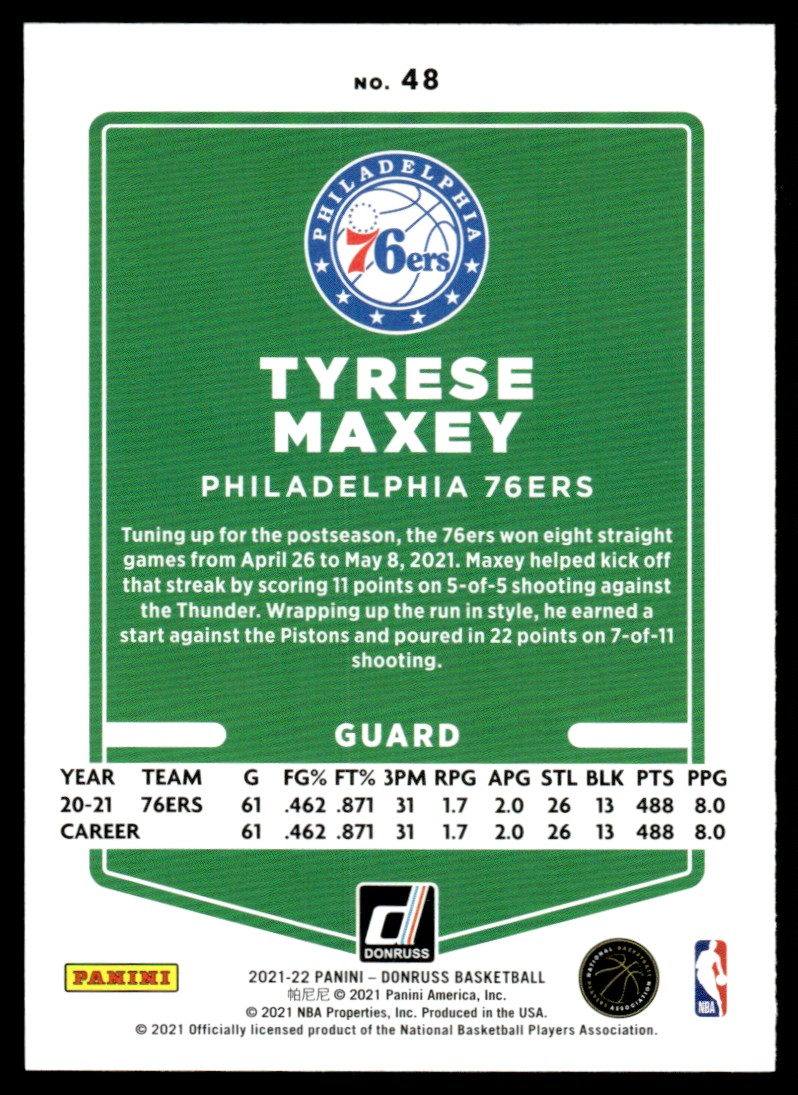 | 2021-22 Donruss Tyrese Maxey Philadelphia 76ers #48 |
