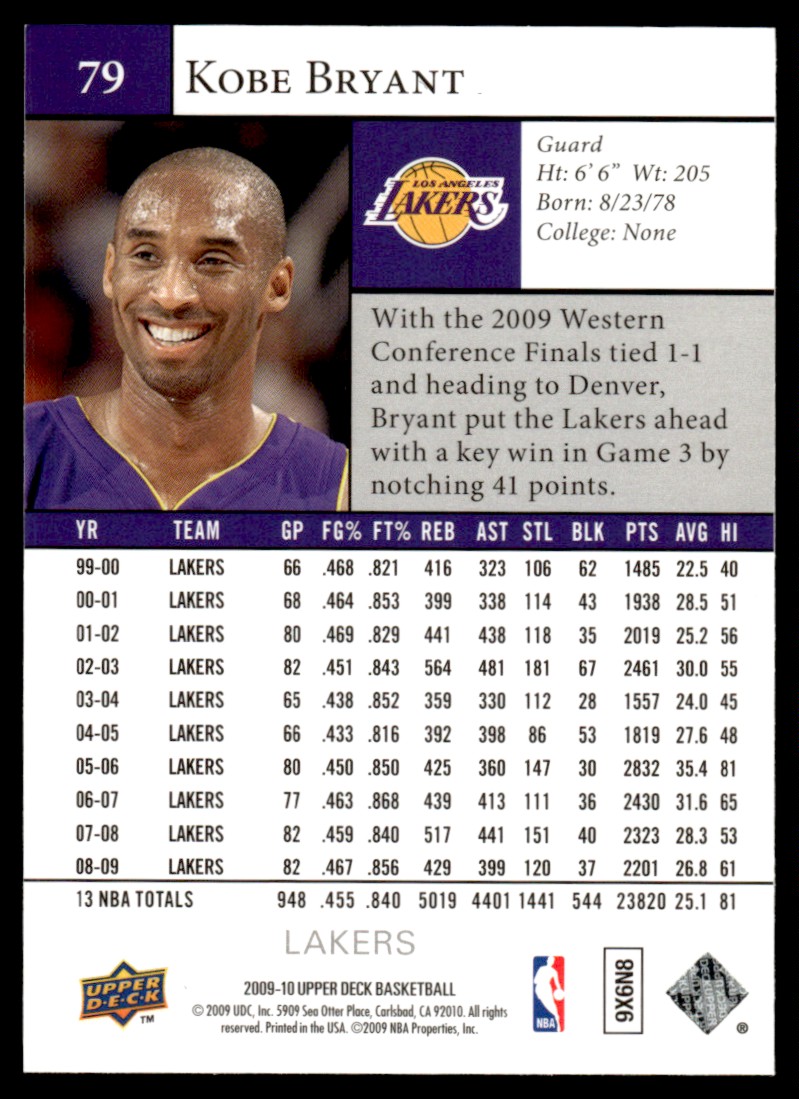 | 2009-10 Upper Deck Kobe Bryant Los Angeles Lakers #79 |