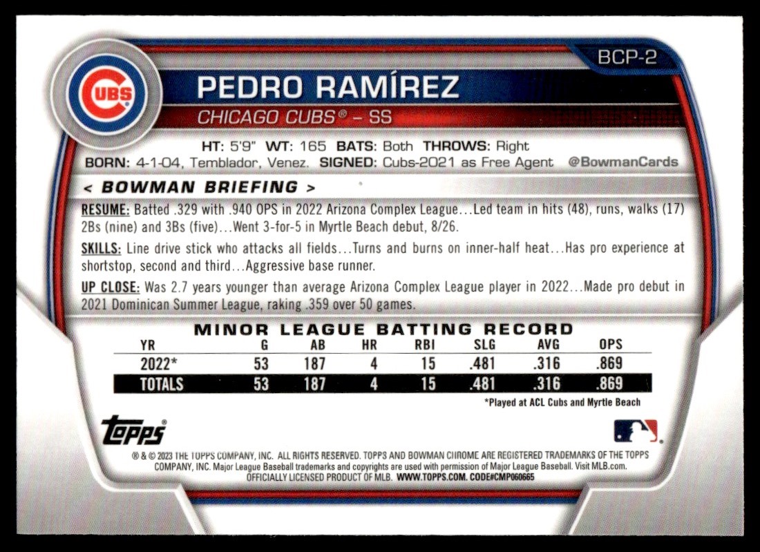 | 2023 Bowman Chrome Prospects Pedro Ramirez Chicago Cubs #BCP-2 Signed |