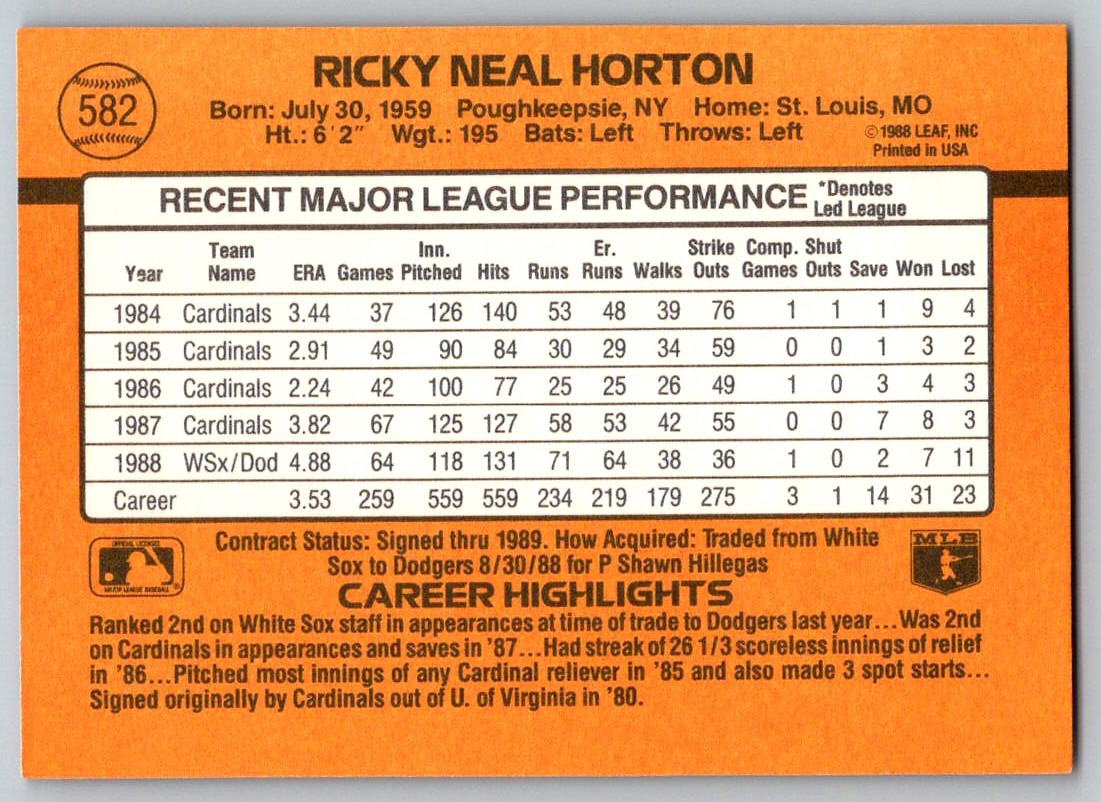 1988 LEAF DONRUSS '89 RICKY HORTON LOS ANGELES DODGERS #582