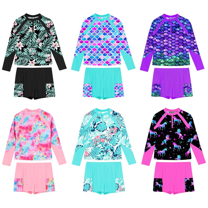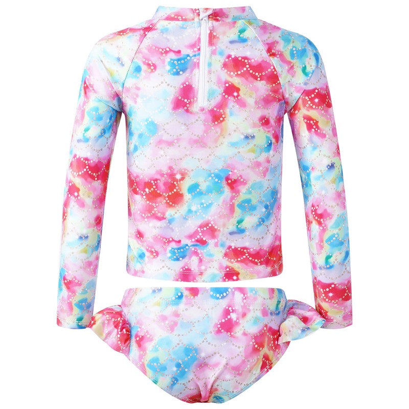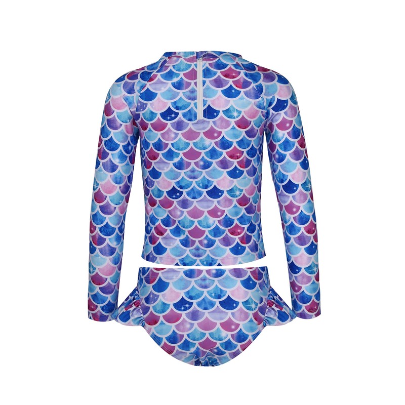 2Pcs swimsuit for girls, fish scales print make girls look like a mermaid princess. Provide upf 50+ sun protection.