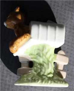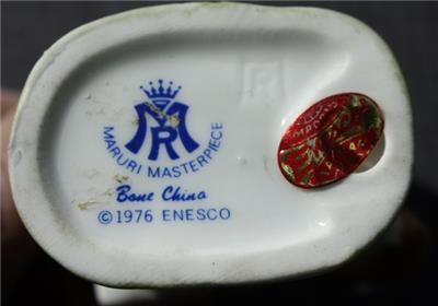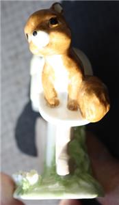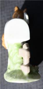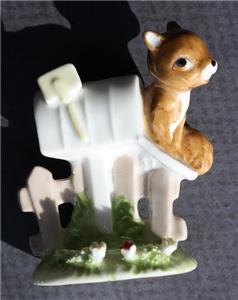 Here is a great vintage ceramic hand painted 1976 Enesco Maruri Masterpiece Bone China Taiwan Squirrel in a Mailbox with 3D Flowers on ground Figurine. It is Adorable. It is marked on bottom with foil sticker. It is in Good Used Condition-SEE ALL PHOTOS. It measures about 3 inches tall by about 2 1/4 inches long. Grab this great collectible while you still can it will not last long.