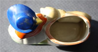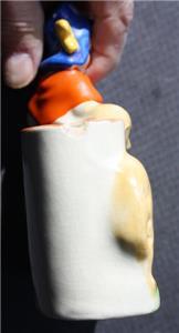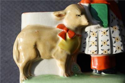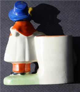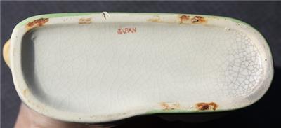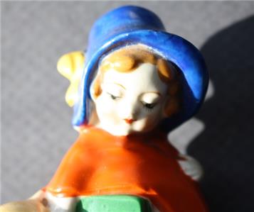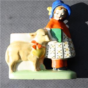 Here is a great ceramic pottery hand painted Made in Japan Girl with bonnet carrying a book with flowered dress with Dog with red bow small Planter Flower Succulent Vase Figurine. It is Adorable. It is marked Japan in Red on bottom-does have a chip on the rim of the planter-SEE ALL PHOTOS. It measures about 5 inches tall by about 4 1/2 inches long. Grab this great collectible while you still can it will not last long.