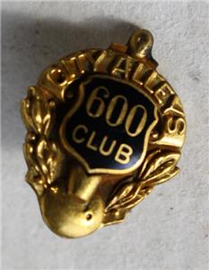Here is a great vintage Tiny Michigan's City Alleys 600 Club award Gold and Black with Bowling pin and Bowling ball Stud Back Pin RARE. Good Used Condition-SEE ALL PHOTOS. It measures about 1/2 inches tall by about 1/2 inches long. Grab this great Bowling Collectible while you still can it will not last long.