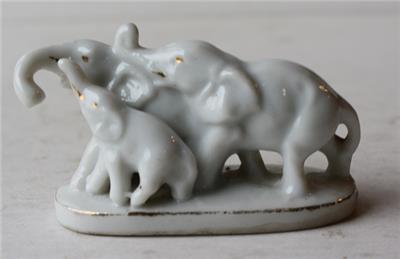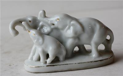 Here is a great ceramic-porcelain hand painted Made in Japan Triple Elephants White with Gold accents figurine. It is Adorable. It is marked Japan on bottom-SEE ALL PHOTOS! It measures about 1 1/2 inches tall by about 3 inches wide. Grab this vintage collectible while you still can it will not last long!