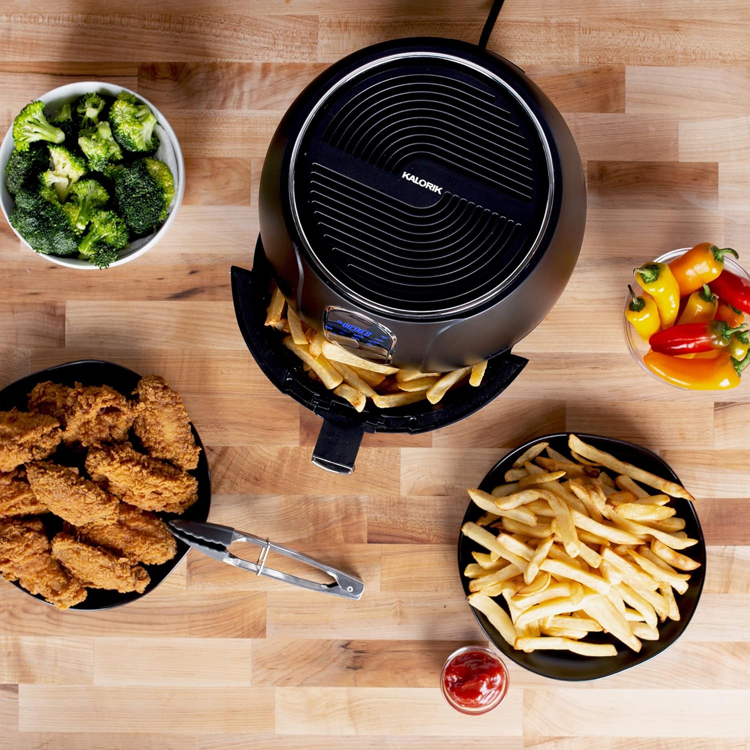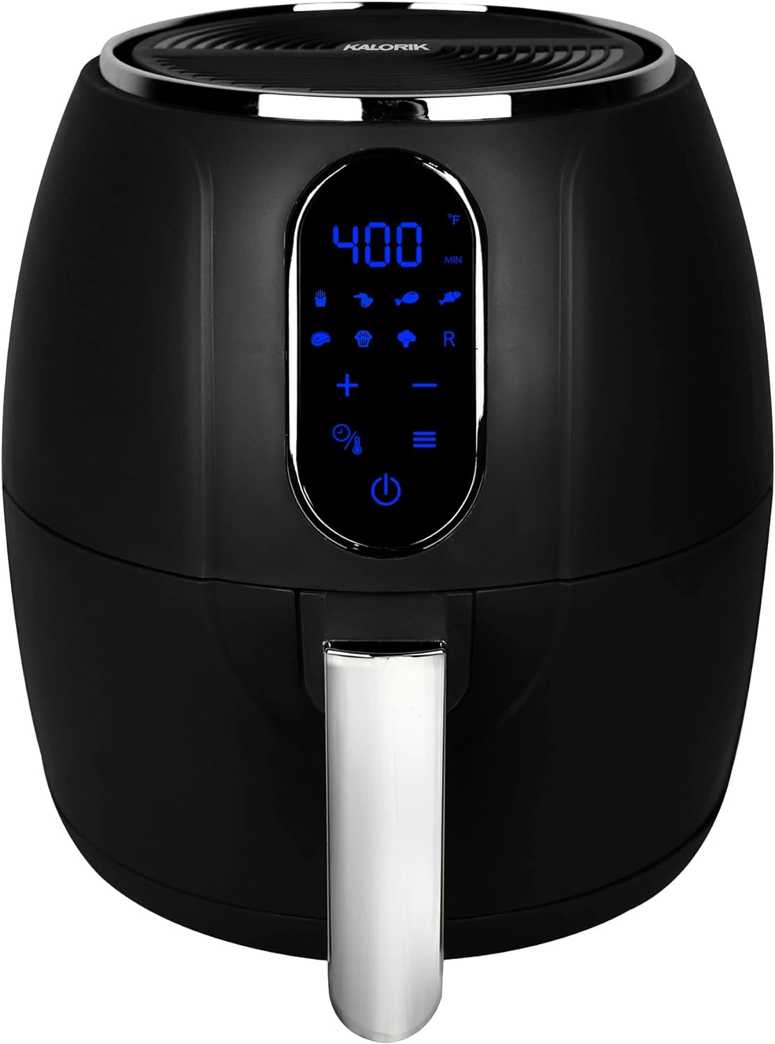 Discover the crisping power of super-hot air and turbo-speed circulation, and enjoy satisfying meals in minutes! The Kalorik 3.2-Quart Digital Air Fryer cooks food in a fraction of the time — with no preheating required. Featuring streamlined digital controls, the Kalorik 3.2-Quart Digital Air Fryer boasts an easy-to-use touchscreen interface with 8 smart presets. You can also customize your culinary experience with the adjustable 60-minute timer and thermostat ranging from 190°F–410°F. Fry all your favorite foods to crispy, golden perfection with little to no oil needed, as air frying reduces fat and calories to actually make fried food healthy. The Kalorik 3.2-Quart Digital Air Fryer makes delicious french fries, onion rings, fried chicken, shrimp, mozzarella sticks, veggies, and more. Skip the microwave, and transform soggy leftovers into crispy, fresh-tasting meals. The Kalorik 3.2-Quart Digital Air Fryer produces a crunchy, golden exterior and moist, tender interior every time, making it perfect for fresh and frozen foods, and reheating yesterday’s leftovers. Meanwhile, the removable dishwasher-safe basket and trivet feature double nonstick-coating for hassle-free cooking and cleanup. The Kalorik 3.2-Quart Digital Air Fryer features modern matte-finish housing and stylish chrome accents, making it the perfect addition to any countertop.