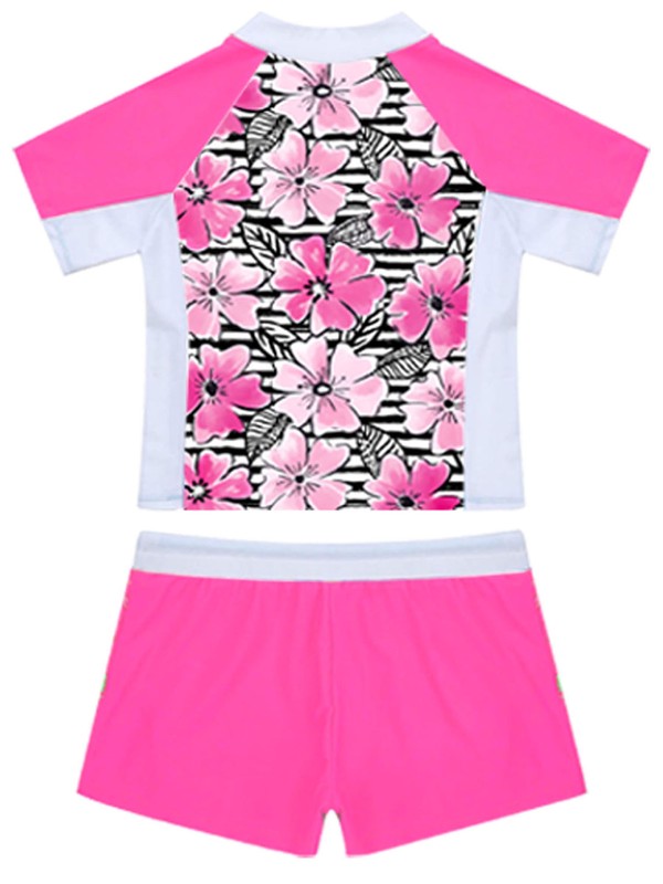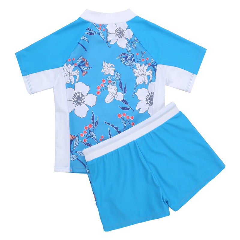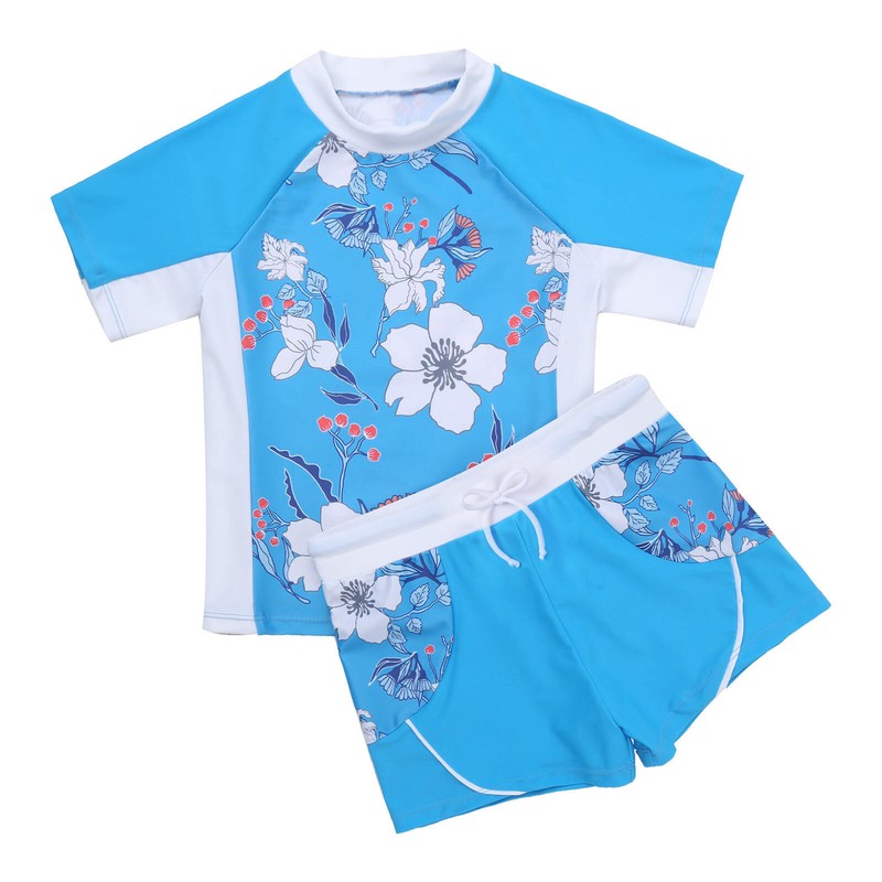 2Pcs Kids Girls Short Sleeves Print Top and Elastic Waist Shorts Swimwear.