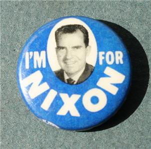 Here is a great vintage 1960 Celluloid Pinback Pin White Blue 7/8" Richard Nixon I'm For Nixon 1960 picture in center campaign Pin. Great Political Pin. It is marked on the rim-SEE ALL PHOTOS. It measures about 7/8 inches round. Grab this great political campaign collectible while you still can it will not last long.