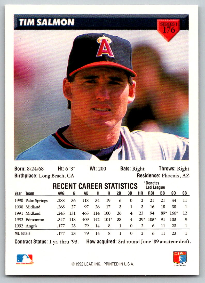 1992 LEAF RATED ROOKIE DONRUSS '93 TIM SALMON RC CALIFORNIA ANGELS #176