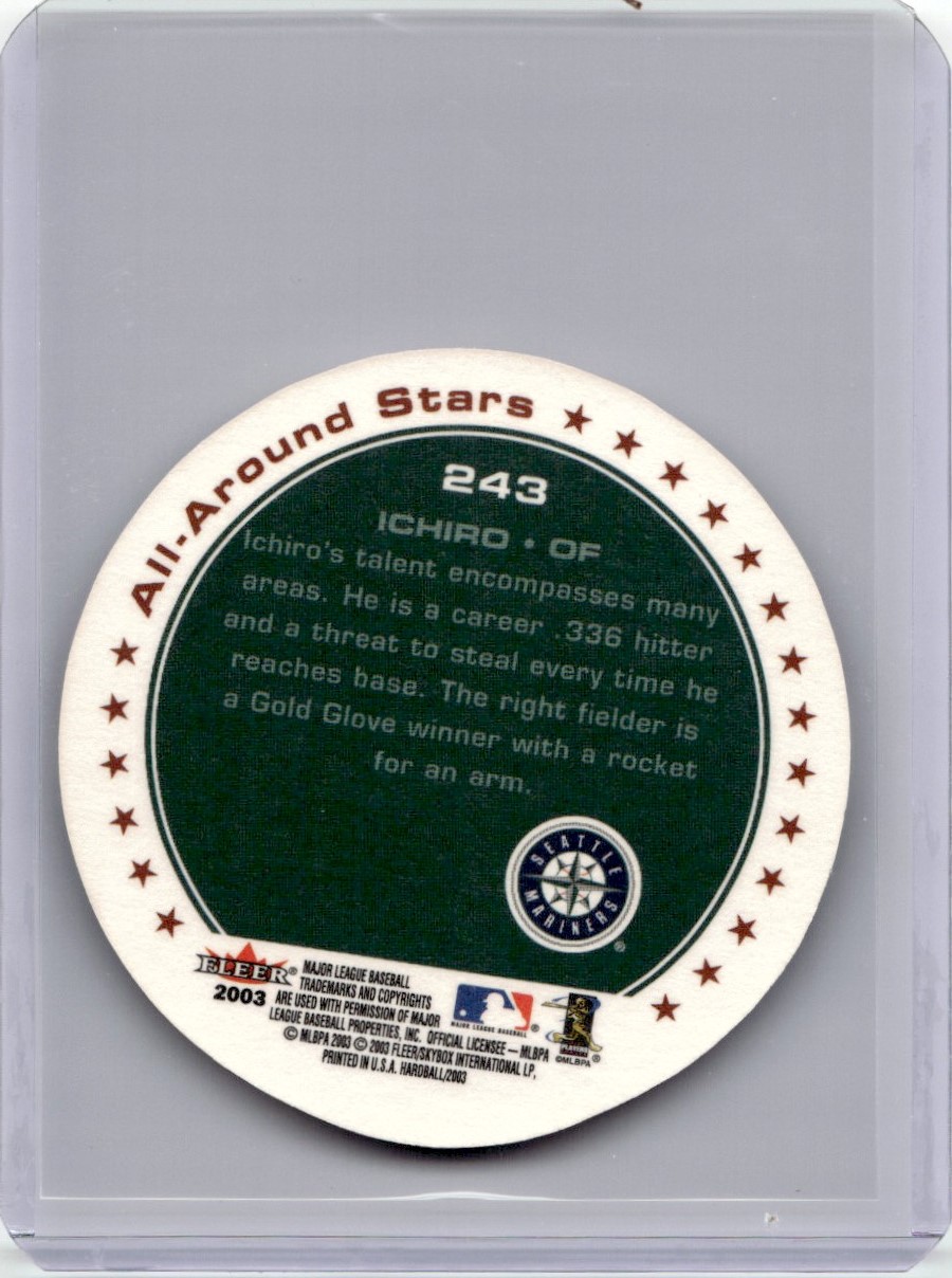 | 2003 Fleer Hardball Baseball Card Ichiro Suzuki Seattle Mariners #243 SP |