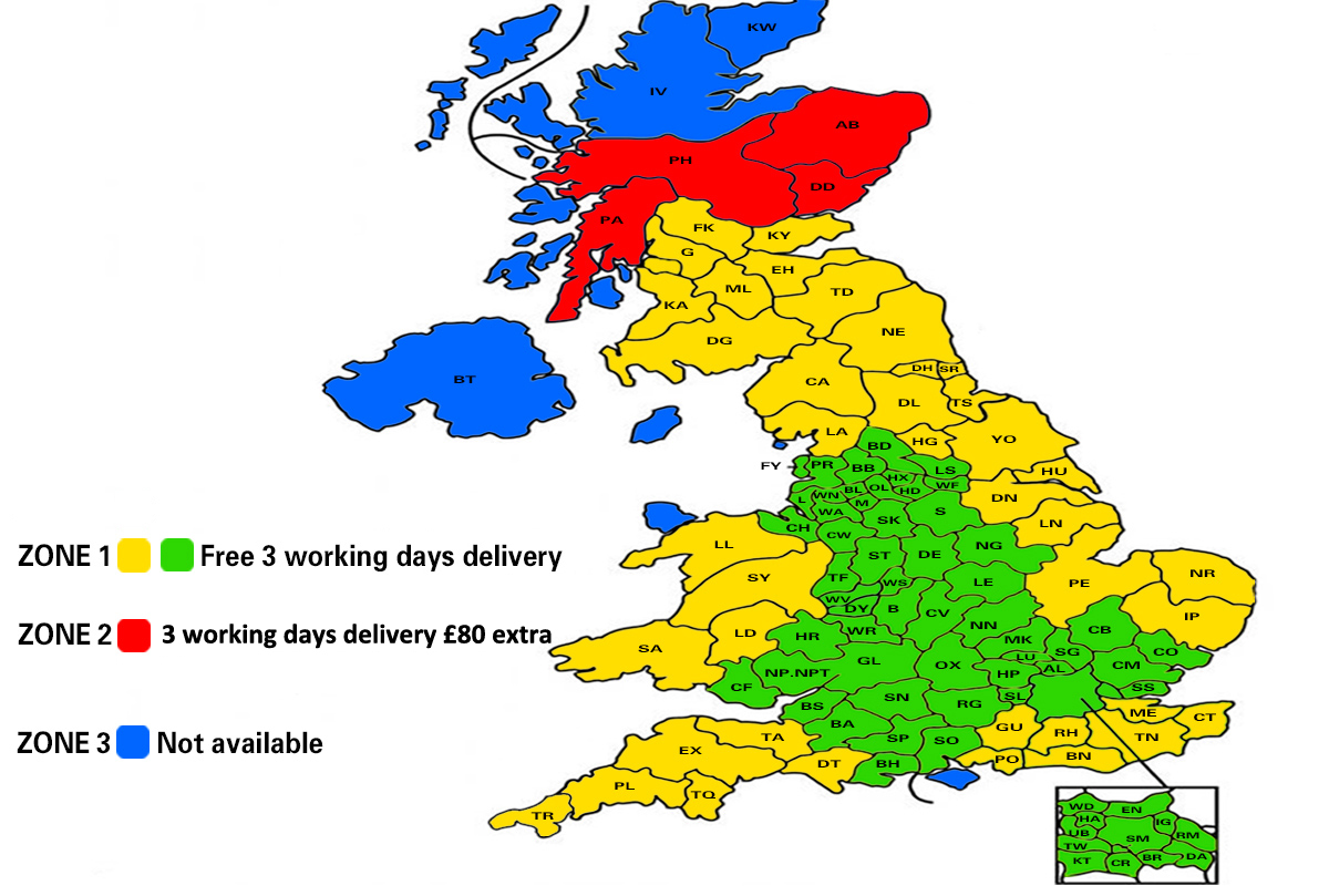 | Isle Of Man/Wight, Highland, Hayling Island,Scottish and Channel Islands,Republic of Ireland, Northern Ireland, Portsea Island | Not Available | |