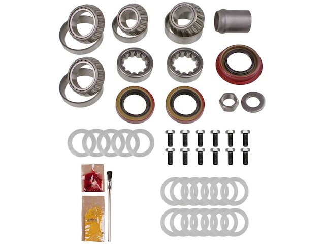 Notes: Differential Bearing Kit -- For GM 8.875" (12 Bolt); Mega Bearing Kit Includes Timken Tapered Bearings (Axle, Carrier, Front and Rear Pinion, Pilot where applicable), Brush, Cover Gasket (or RTV), Crush Sleeve (or Preload Shim Pack), Marking Compound, Pinion Nut, Ring Gear Bolts, Seals (Axle, Pinion), Shims (Pinion, Carrier), and Thread Locking Compound