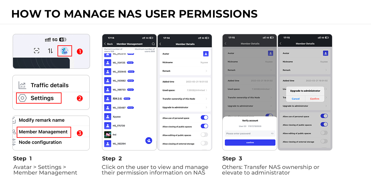 ćInvite family and friends to share dataćMultiple ways, one click sharing: Through QR code sharing, link sharing, and third-party software sharing, you can invite family and friends to join in sharing data. You can also view access records, set access permissions and access times.
