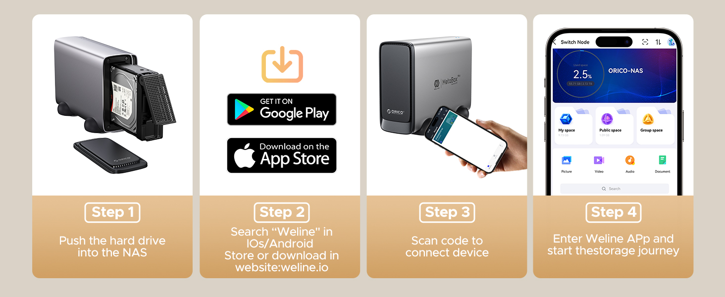 ORICO MetaBox Mini (Network Attached Storage) is your personal data protection expert that you deserve! It can store HD movies, AAA games, back up precious family photos, and important documents. Easy-to-use management, various data protection, make it easier to preserve your memories!