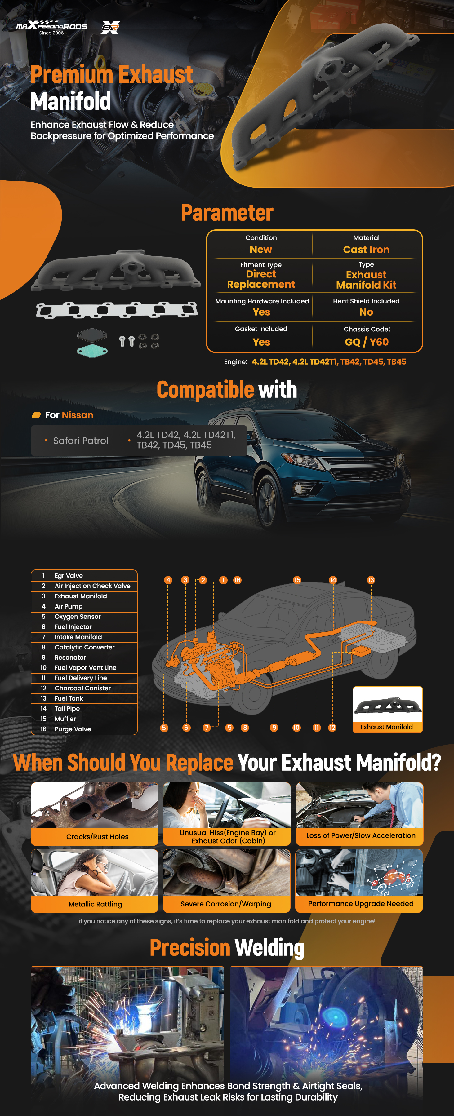 Turbo Exhaust Manifold for Nissan Safari Patrol 4.2L TD42 GU GQ Y60 cast iron
