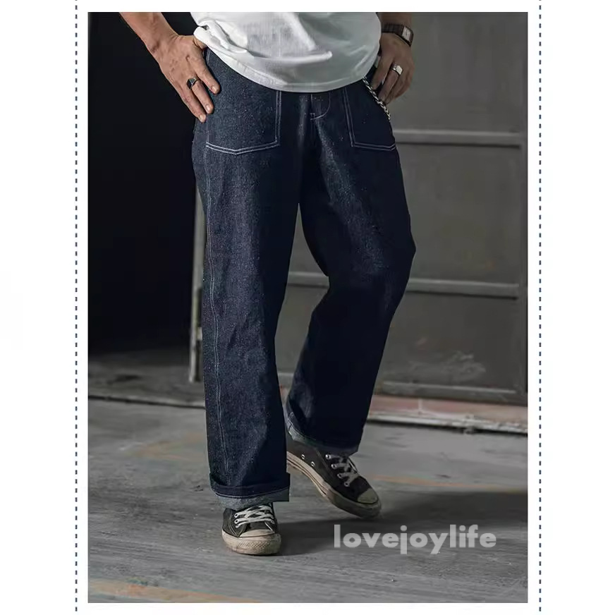NON STOCK Vintage 9oz Denim Pants Loose Fit Men Jeans High Waist Casual Trousers