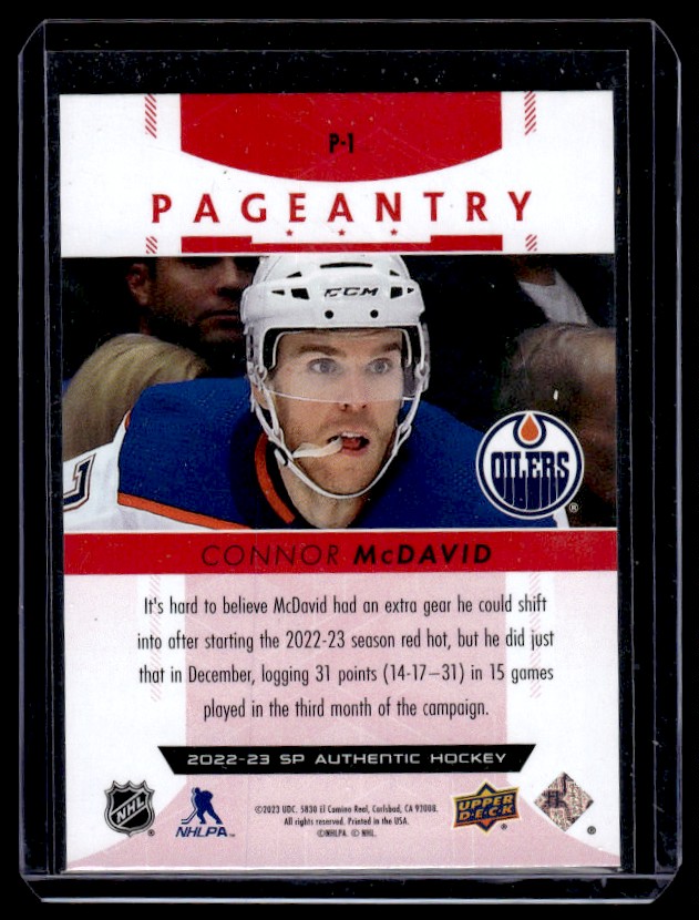 | 2022-23 SP Authentic Pageantry Red Paralell Connor McDavid Edmonton Oilers #P-1 |