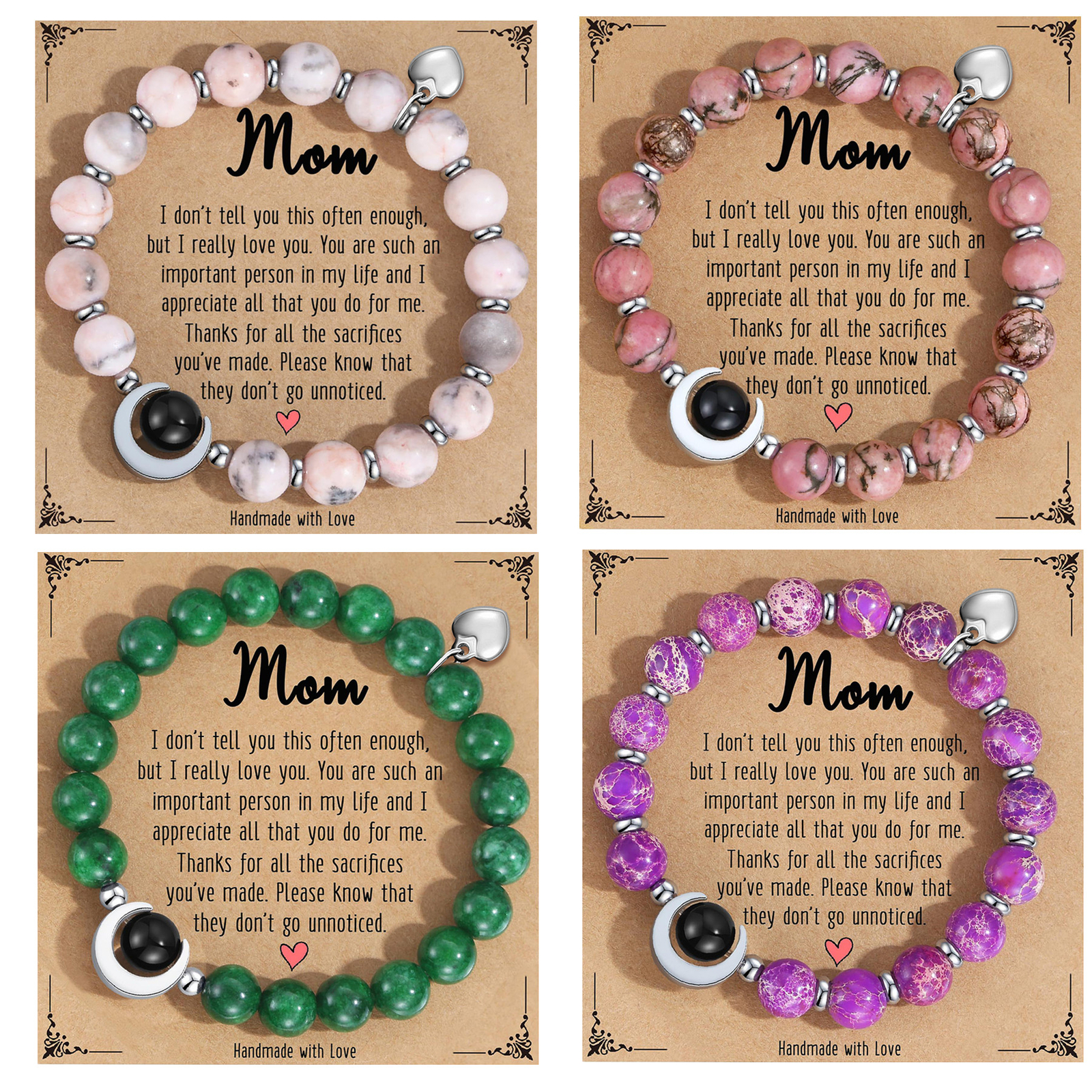 Moon Sun Heart Healing Bracelet Women Anxiety Yoga Beaded Bangle with Gift Box