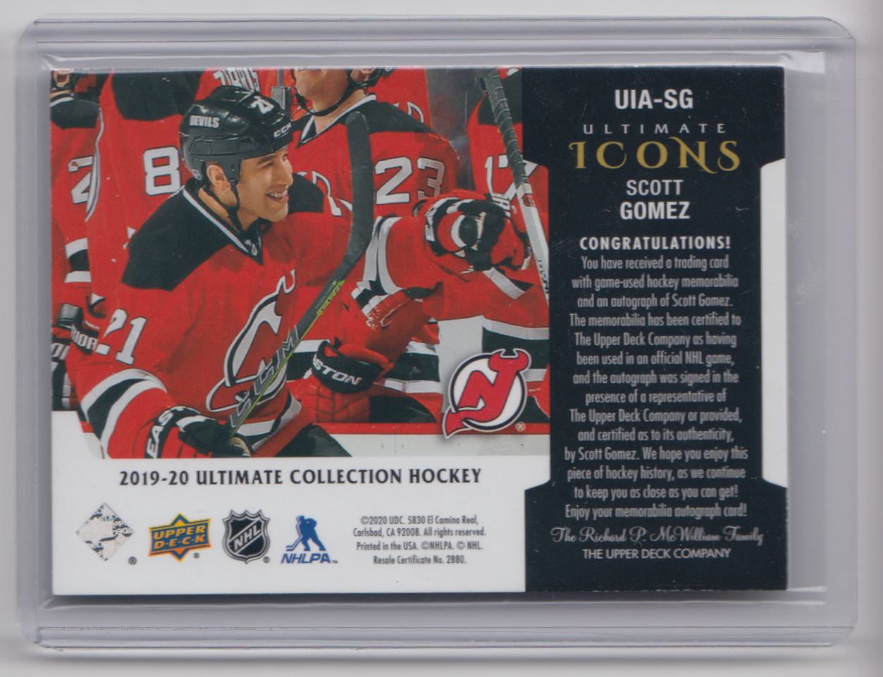 | 2019-20 UD Ultimate Collection Icons Jersey Autograph Scott Gomez Auto /135 New |