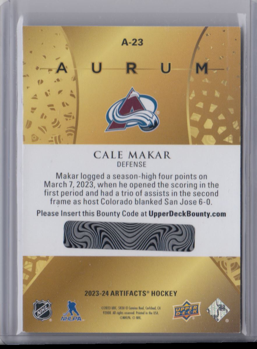 | 2023-24 Upper Deck Artifacts Aurum Cale Makar Colorado Avalanche #A-23 |