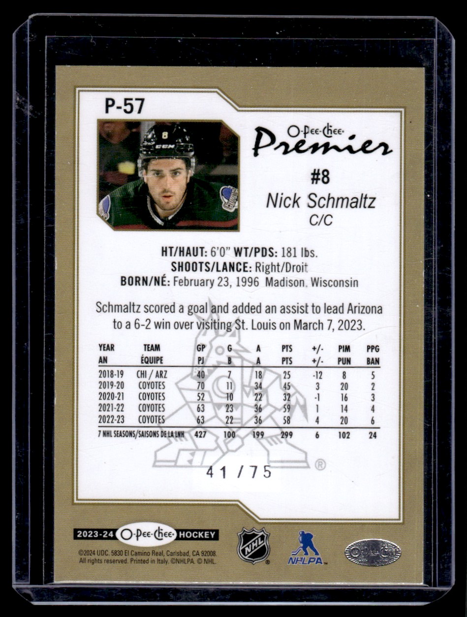 | 2023-24 O-Pee-Chee Premier Pattern Foilboard Nick Schmaltz 41/75 Arizona Coyotes |