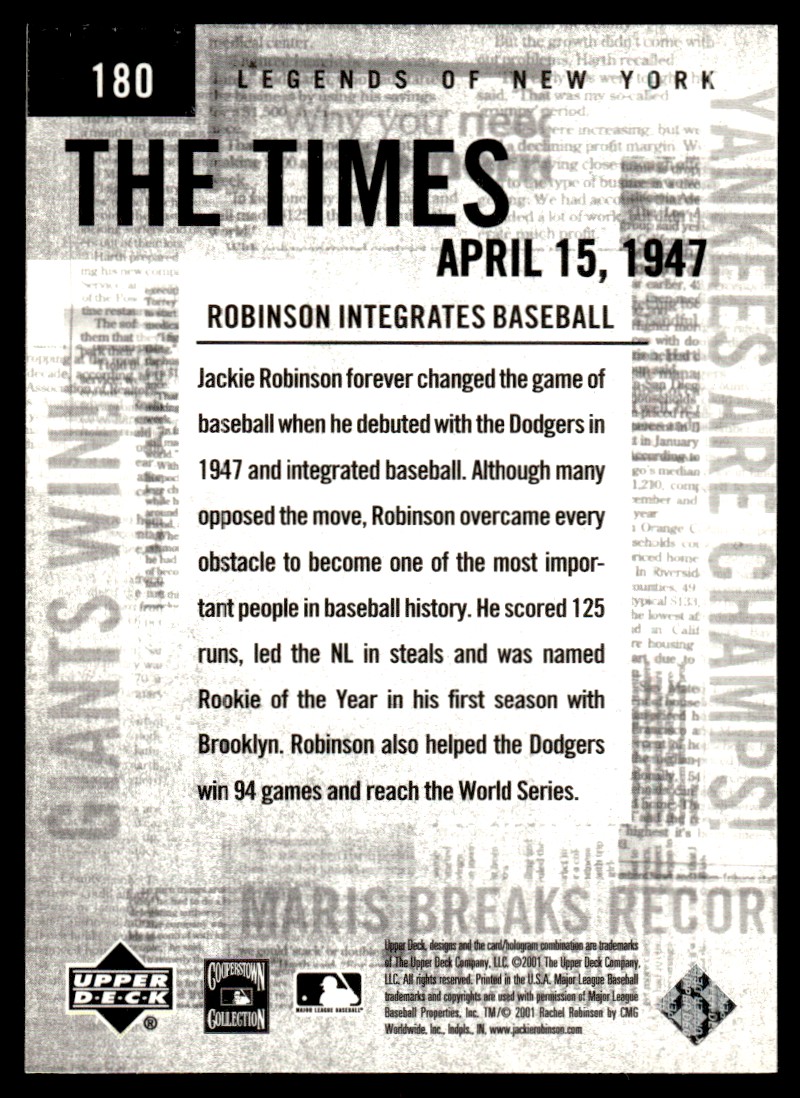 | 2001 Upper Deck Legends of NY Jackie Robinson Brooklyn Dodgers #180 |