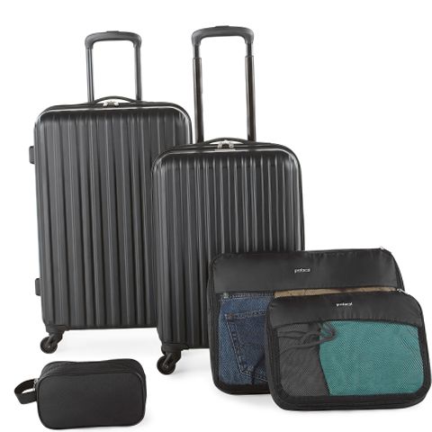This Protocol Sarasota hardside 5-piece luggage set is the perfect companion for the everyday traveler. This set includes 24" and 20" suitcases, a toiletry bag, and two zip-packing cubes, all made of durable, lightweight material for limitless, easy travel. The suitcases have a retractable push-button handle and a multi-directional 360° wheel spinner system. In contrast, the cubes have an easy-to-carry design woven, and the toiletry bag has a comfortable strap handle.
