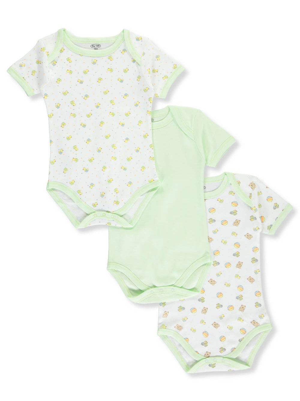 Big Oshi Unisex Baby "Playdate" 3-Pack Bodysuits - green, 12 - 18 months