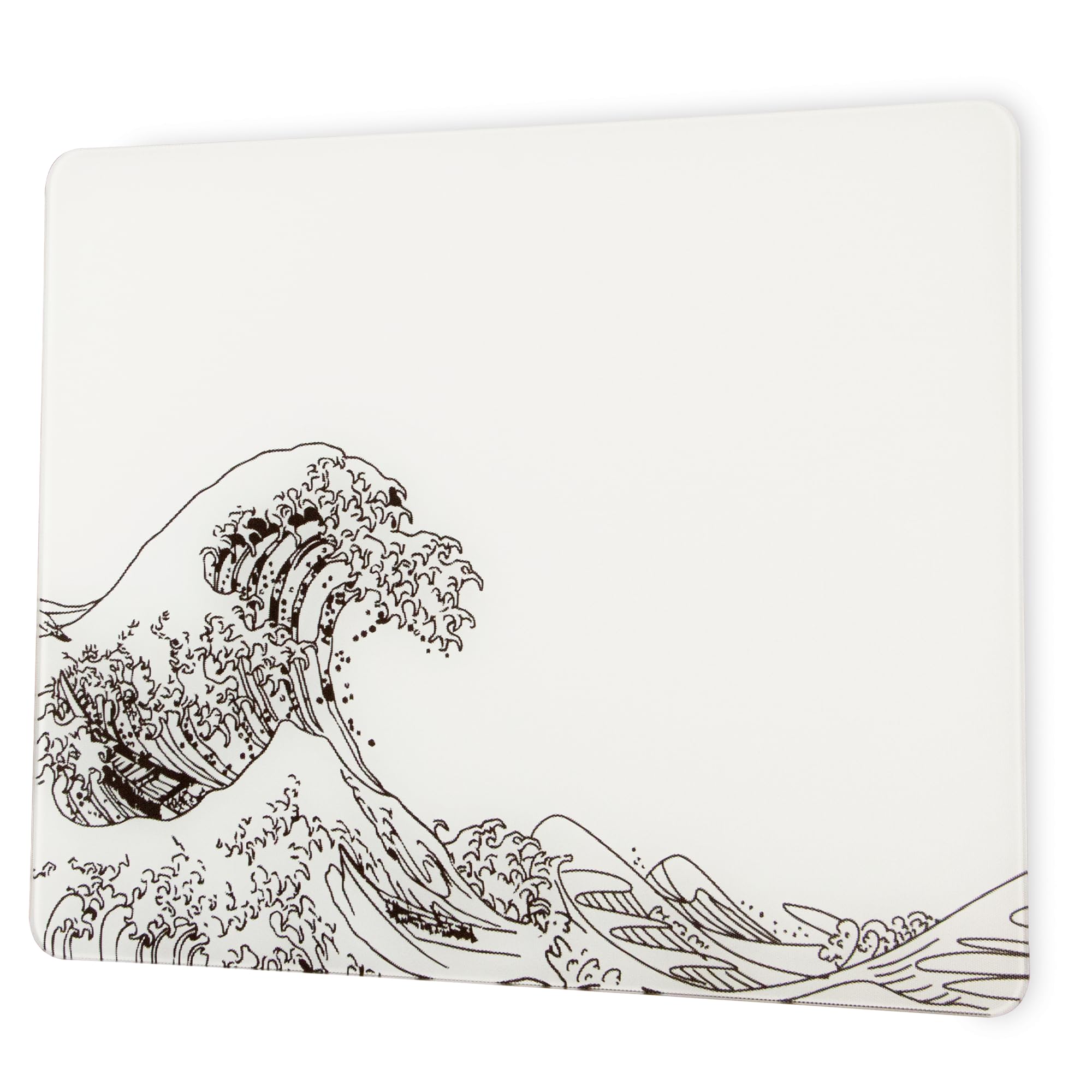 Glass Gaming Mouse Pad, White Kanagawa Hard Mousepads for Gaming,Professional Large Mouse Mat 410mm*310mm, Special Glass Surface with Improved Precision and Speed