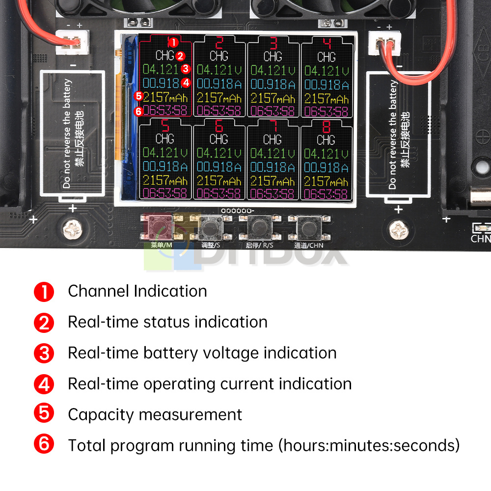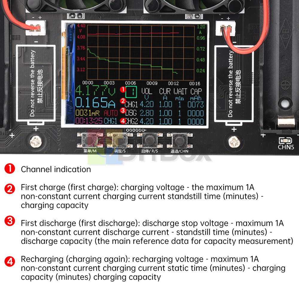Discharge current: each channel independently maximum about 1A non-constant current discharge, and discharge current is not adjustable.
