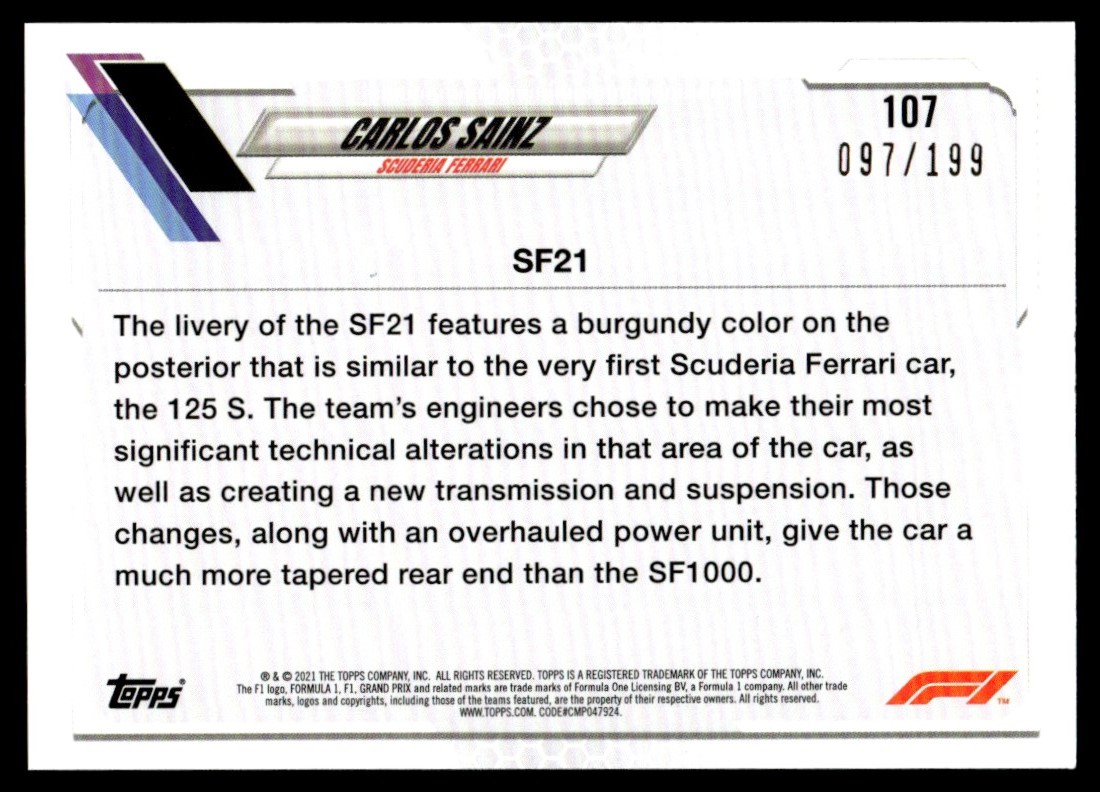 2021 Topps Formula 1 Aqua Carlos Sainz 097/199 Scuderia Ferrari #107