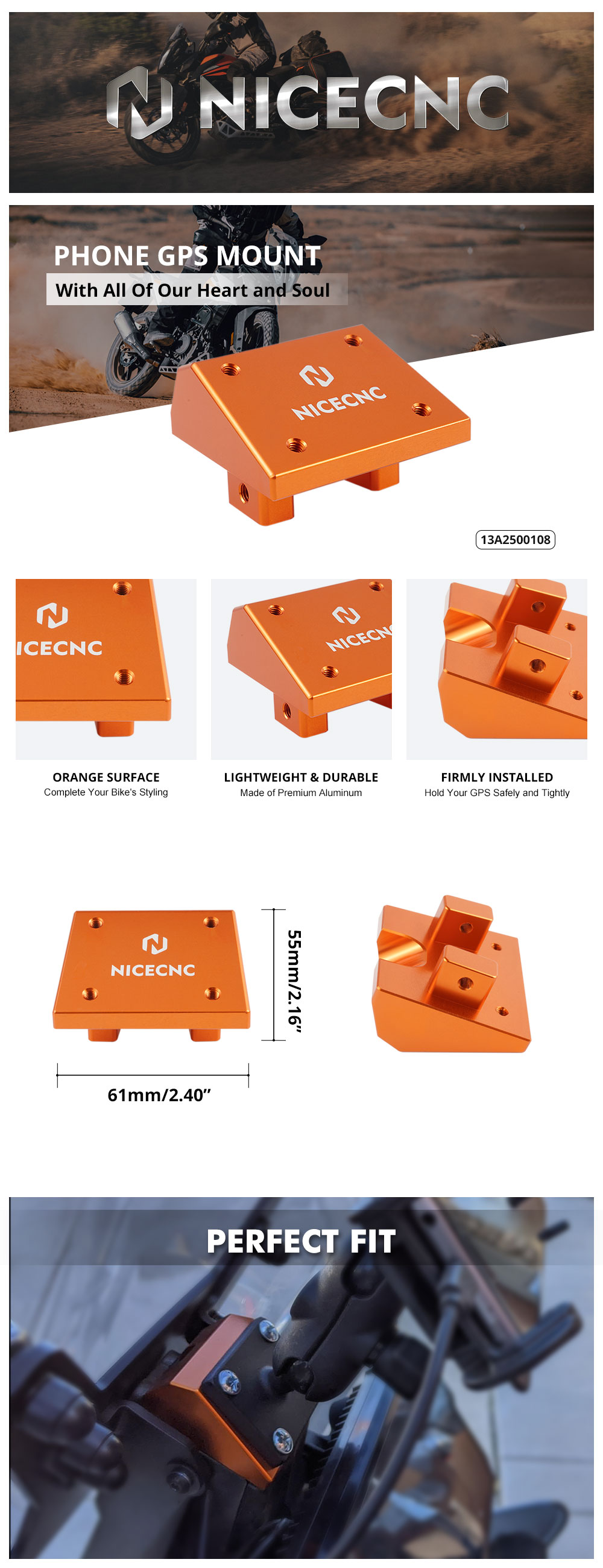 -- Made of premium aluminum this NICECNC mount is durable enough to company you riding through -- thousands of miles of ridng without easy damaged by muds and stones.