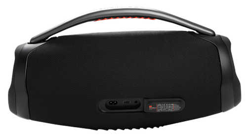 We just made our most powerful portable Bluetooth speaker even better. The iconic silhouette of the JBL Boombox 3 has a bold new update featuring a sturdy metal handle with silicone grips, twin sidecaps, and waterproof and dustproof signature fabric. It’s been redesigned inside too, added with a new subwoofer unleashing much deeper bass and massive JBL Original Pro Sound, all with lower distortion. And 24 hours of play time takes you all the way from your morning workout to a late-night hang with your friends.