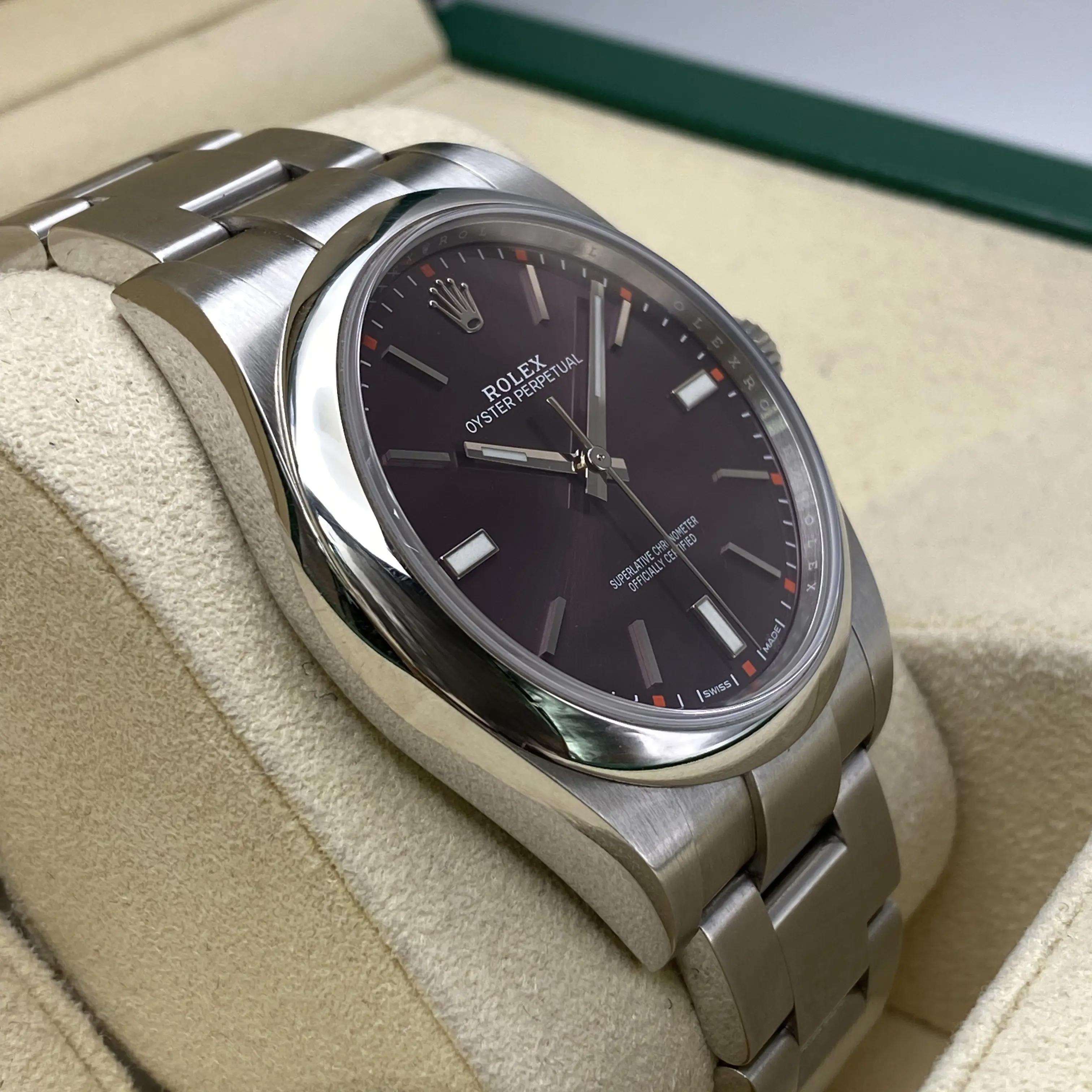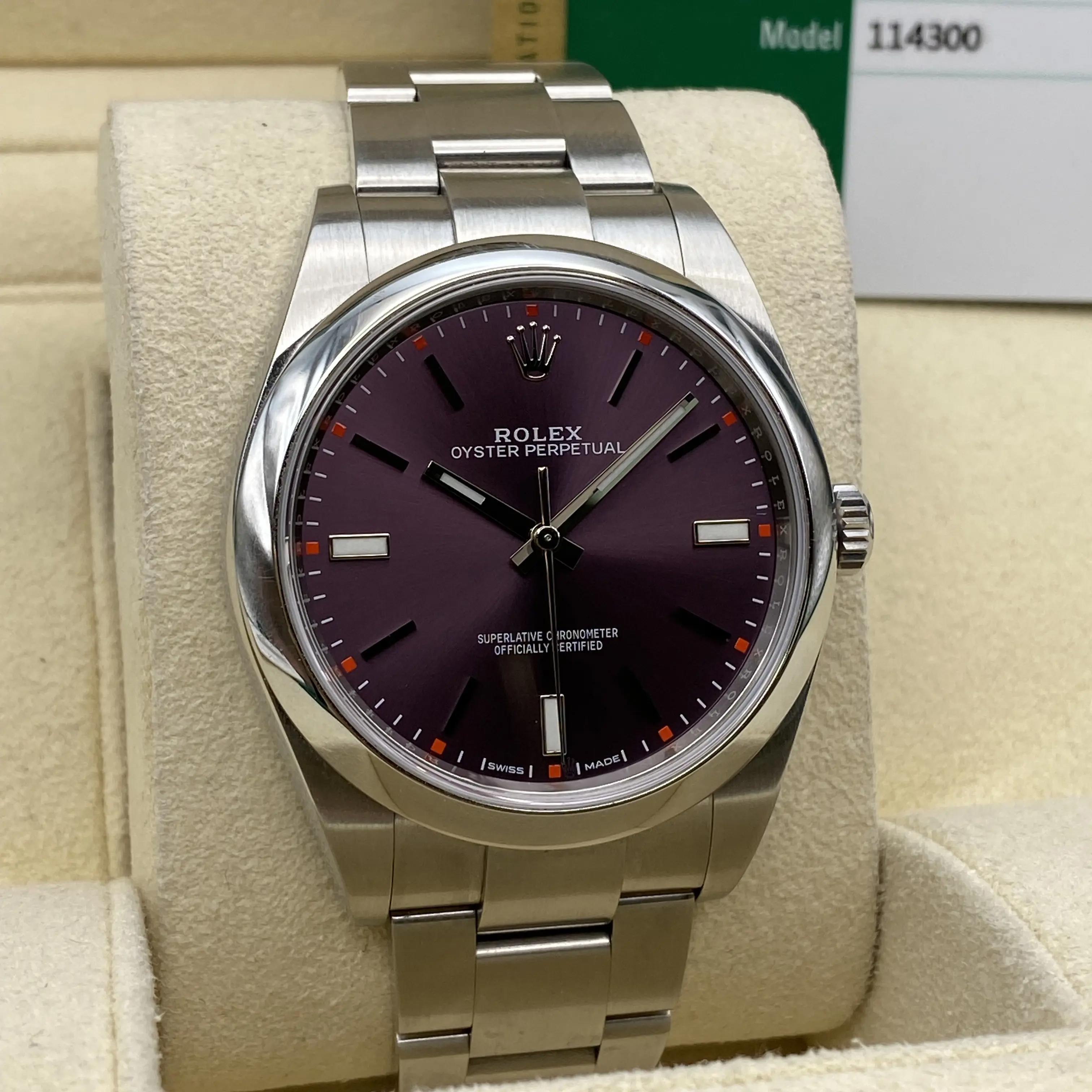 Rolex Oyster Perpetual 114300 Grape Sticks Dial Steel Automatic Watch B&P