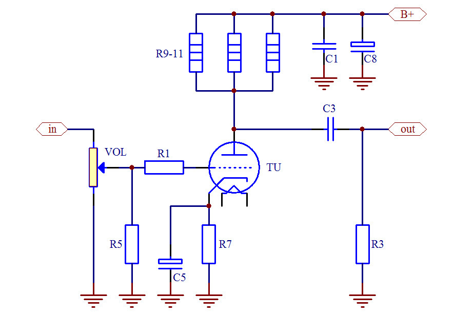 Classic single-tube amplification connection, as long as the attention of the component value and supply voltage, many bile ducts can play.