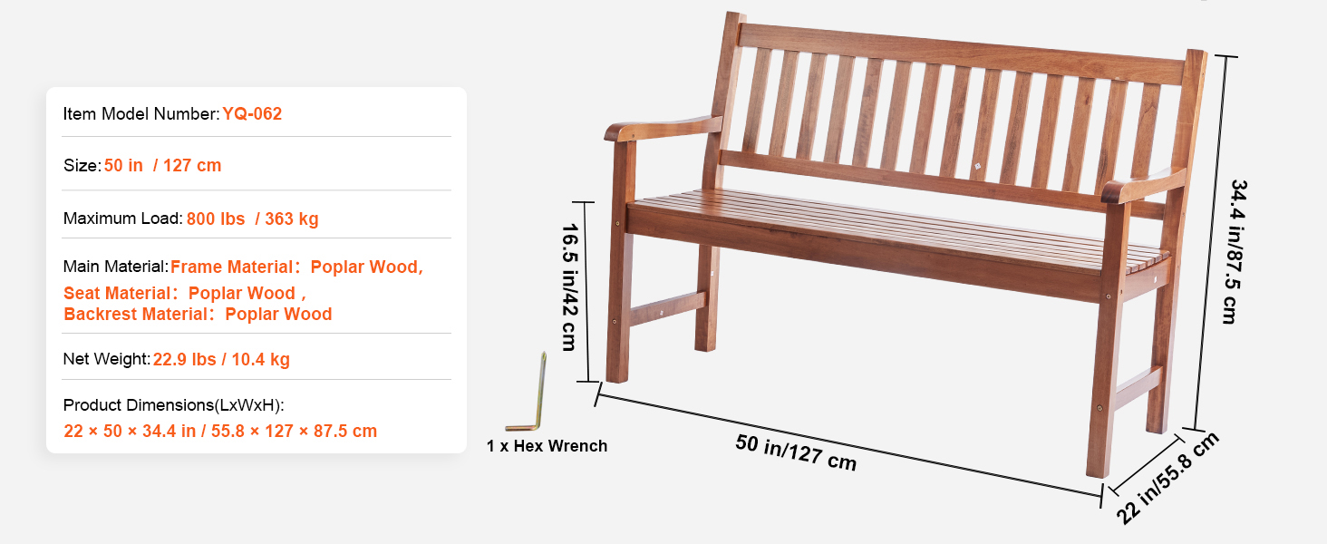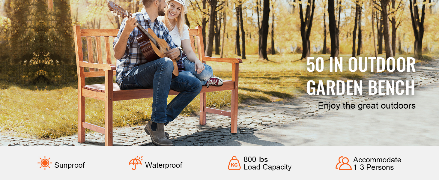 Built for the Outdoors: Crafted from high-quality solid wood, this outdoor park bench is designed to withstand long-term outdoor use and various weather conditions. It resists corrosion, deformation, and damage, supporting up to 800 lbs / 363 kg to accommodate users of different sizes.