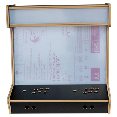 This kit is available to order with or without a pre-drilled plexi for the control panel. The clear plexi is a good option to choose, when you intend to put artwork underneath. This can be selected from the options above when ordering.