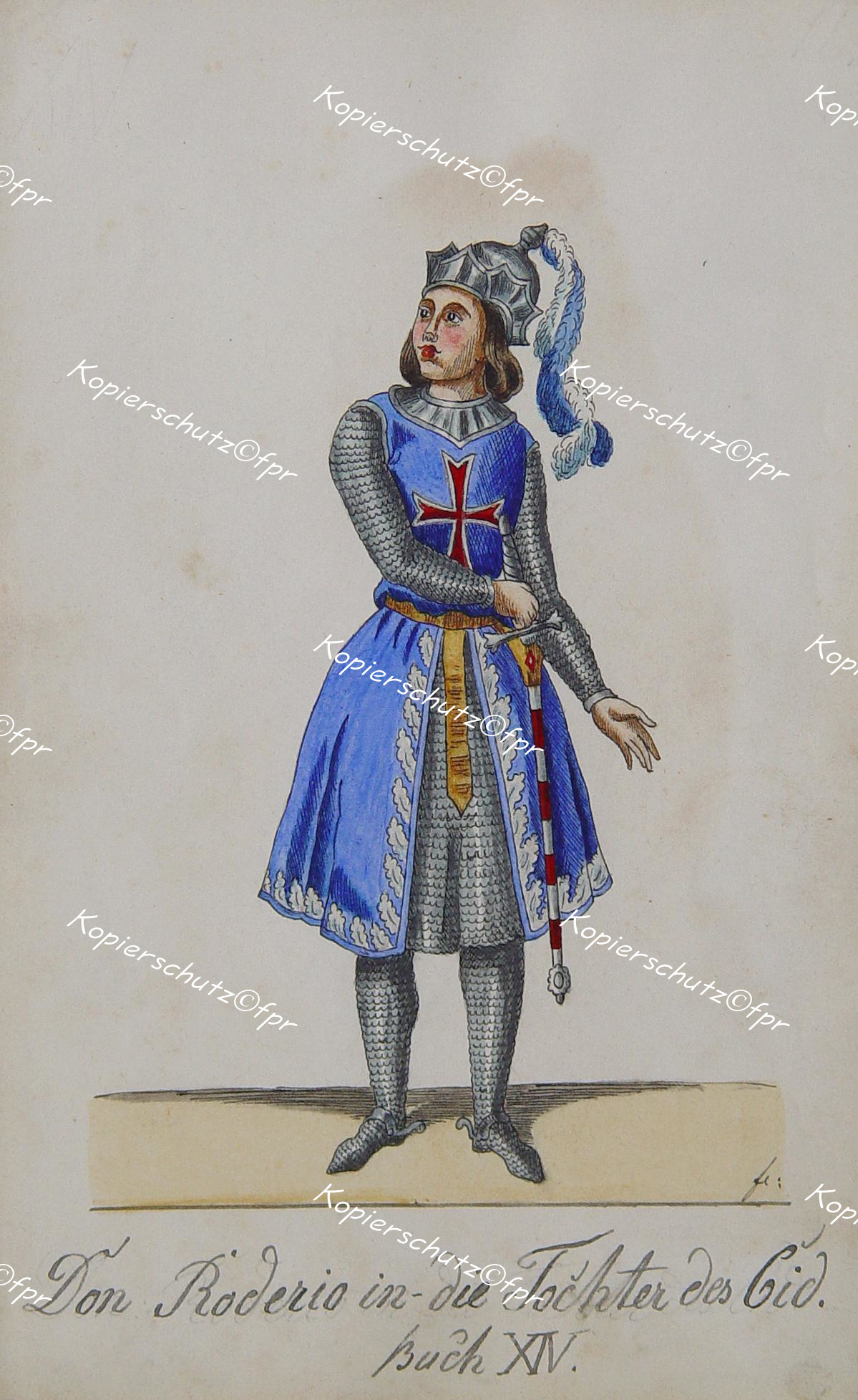 "Don Roderio in die Tochter des Cid" originale aquarellierte Tuschfederzeichnung ca.12x8,5cm (Darstellung/Image size) auf Papier (18x11cm) unterhalb der Darstellung in Bleistift betitelt; um 1860